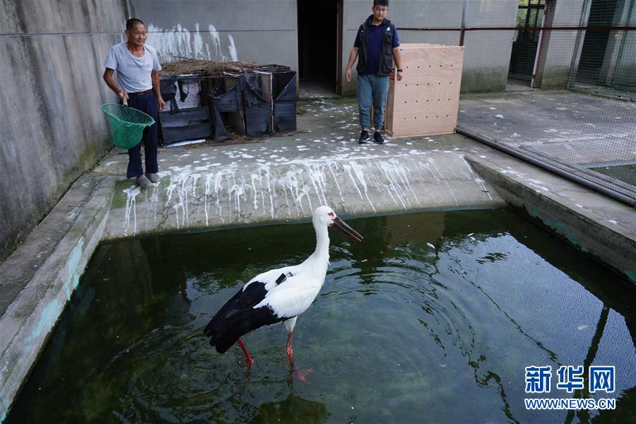 6月17日,東方白鸛從籠中飛出。