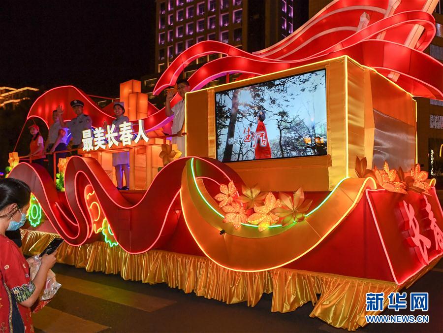 6月19日,花車在長春市人民大街上巡游。新華社記者張楠攝