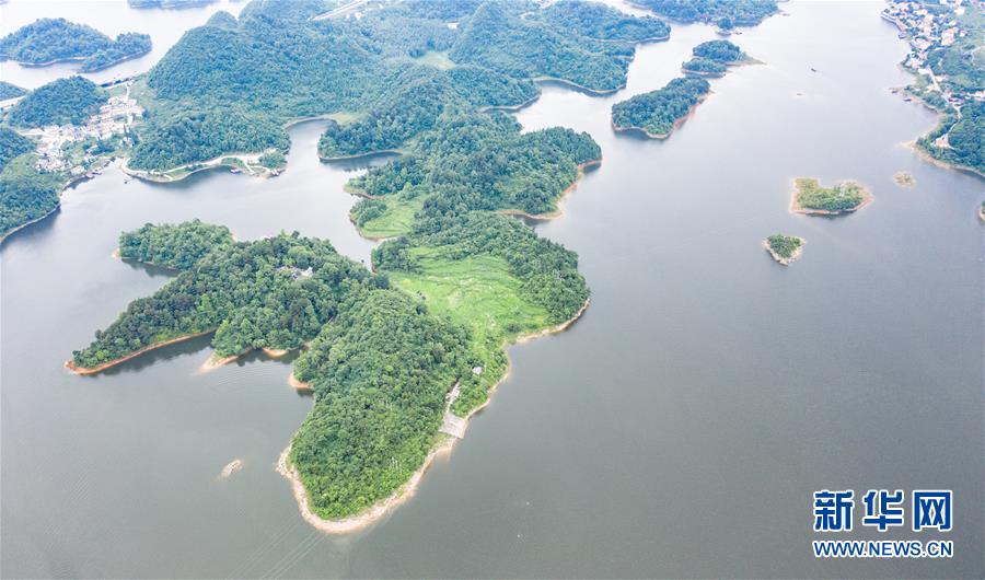 6月21日拍攝的紅楓湖景區(qū)風(fēng)光(無人機(jī)照片)。夏至?xí)r節(jié),貴州省清鎮(zhèn)市紅楓湖景區(qū)草木蒼翠,秀麗的湖光山色吸引不少游客前來游玩。新華社記者陶亮攝