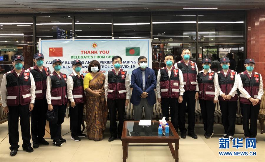 6月22日,孟加拉國(guó)衛(wèi)生和家庭福利部部長(zhǎng)馬利克(右六)等在首都達(dá)卡舉行的送行儀式上與中方專(zhuān)家組合影留念。中國(guó)赴孟加拉國(guó)抗疫醫(yī)療專(zhuān)家組圓滿完成任務(wù),于22日乘機(jī)返回祖國(guó)。孟加拉國(guó)衛(wèi)生和家庭福利部部長(zhǎng)馬利克對(duì)疫情發(fā)生以來(lái)中國(guó)給予孟加拉國(guó)的大力支持表示感謝。新華社記者劉春濤攝