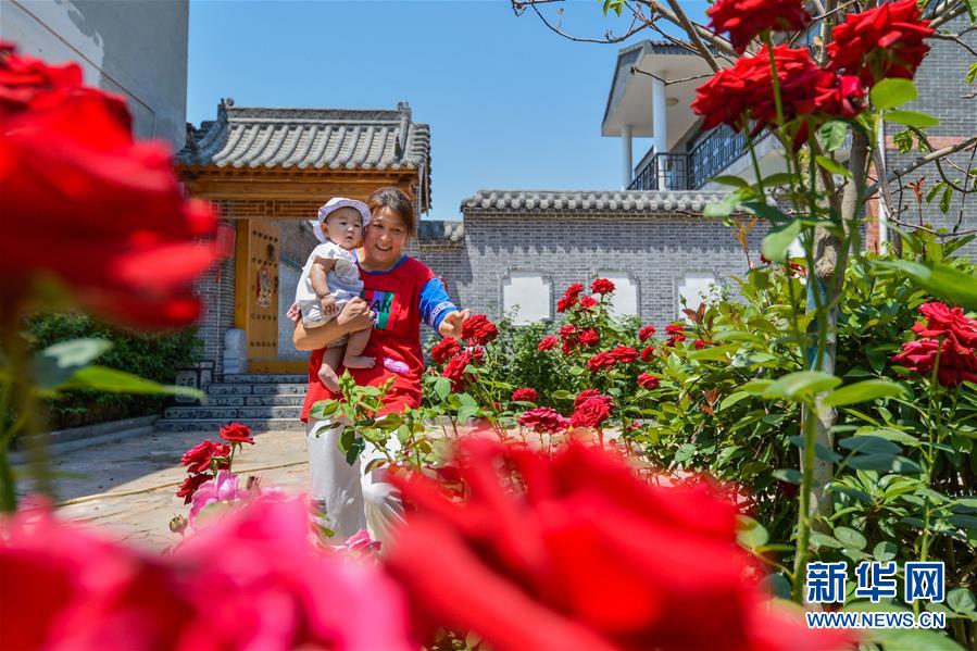 河北省邯鄲市邯山區(qū)河沙鎮(zhèn)小堤村村民在家門(mén)口賞花(5月29日攝)。新華社記者王曉攝