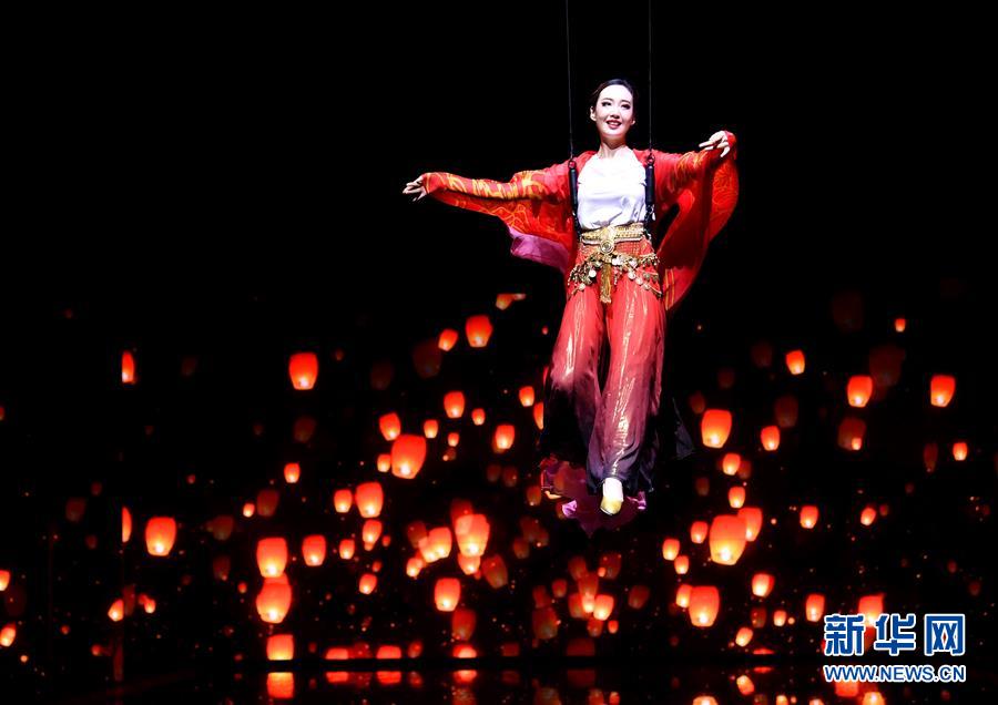 6月22日拍攝的《西安千古情》演出現(xiàn)場。大型舞臺劇《西安千古情》22日在西安浐灞世博園首演。該劇以一位華裔少女歸國尋根為故事主線,濃縮展現(xiàn)了古城西安的悠久歷史文化。新華社記者張博文攝