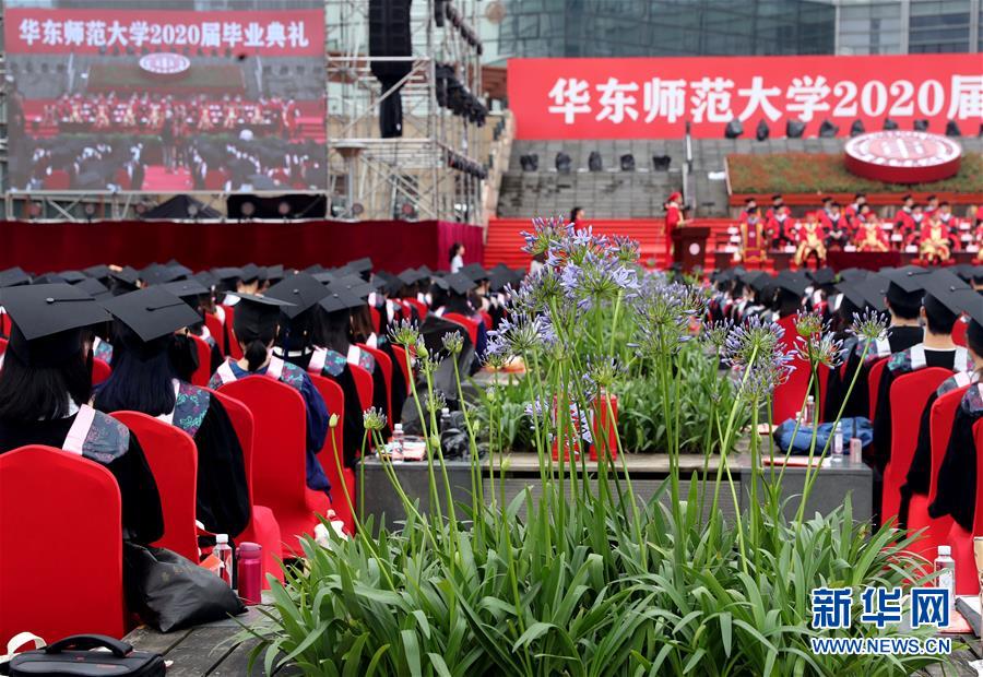 6月23日,在華東師范大學(xué)閔行校區(qū)的畢業(yè)典禮上拍攝的本屆“畢業(yè)花”——百子蓮。該校有“畢業(yè)花”的傳統(tǒng),每年由畢業(yè)生票選花卉品種,學(xué)校提前栽培,畢業(yè)季時(shí)開滿校園,作為學(xué)校送別畢業(yè)生的禮物。當(dāng)日,華東師范大學(xué)舉行2020屆畢業(yè)典禮。由于疫情防控需要,今年的典禮在兩個(gè)校區(qū)分別舉辦,并全程在線直播。約7700名華東師范大學(xué)2020屆畢業(yè)生通過現(xiàn)場或“云端”的方式參加畢業(yè)典禮。新華社記者劉穎攝