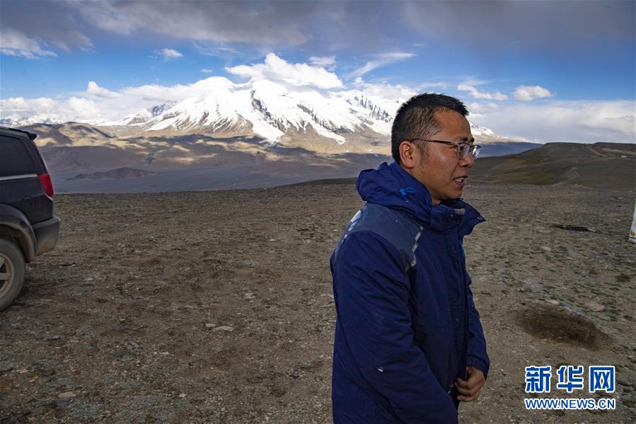 到達(dá)慕士塔格觀測(cè)站后,冷風(fēng)襲來,馮國(guó)杰穿上沖鋒衣,拉上拉鏈(6月15日攝)。新華社記者胡虎虎攝