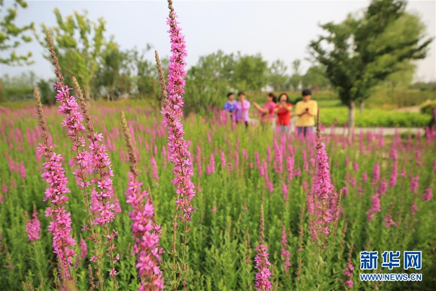 6月27日,市民在遷西縣長(zhǎng)河帶狀公園內(nèi)游覽。新華社記者牟宇攝
