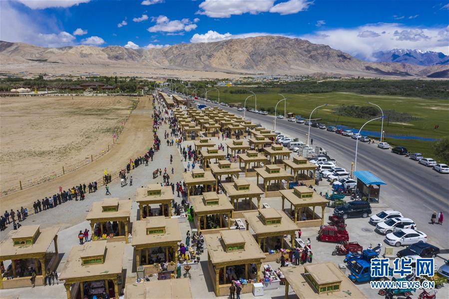 6月25日,人們?cè)谛陆矌鞝柛伤俗灾慰h端午節(jié)群眾性文化體育活動(dòng)現(xiàn)場(chǎng)購物、品嘗美食、觀看賽馬(無人機(jī)照片)。當(dāng)日,新疆塔什庫爾干塔吉克自治縣端午節(jié)群眾性文化體育活動(dòng)在位于縣城附近的非物質(zhì)文化遺產(chǎn)展示園拉開帷幕。本次活動(dòng)為期三天,將舉辦豐富多彩的文藝演出和多項(xiàng)非物質(zhì)文化遺產(chǎn)展示表演,充實(shí)居民和游客的節(jié)日文化生活。新華社記者胡虎虎攝