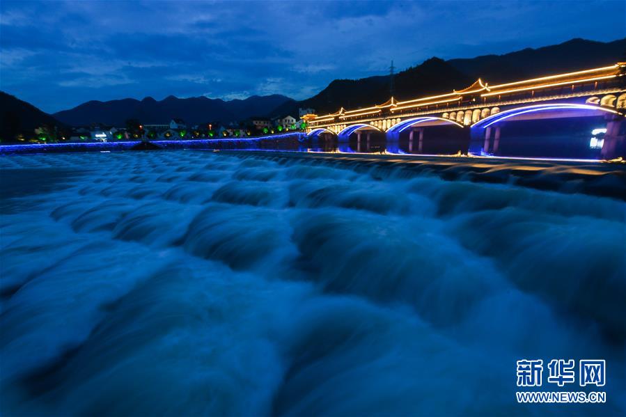 6月27日拍攝的夜色中的杭州市富陽區(qū)湖源鄉(xiāng)龍鱗壩。近期,浙江省杭州市富陽區(qū)場口鎮(zhèn)、常安鎮(zhèn)和湖源鄉(xiāng)組團(tuán)開啟了一場夏季“綠水青山嘉年華”。這幾個壺源溪流域鄉(xiāng)鎮(zhèn)整合生態(tài)旅游資源,組團(tuán)開發(fā)山村旅游項目,游客可以參與壺源溪水上游樂、露營永安山頂、特色農(nóng)產(chǎn)品集市和瓜果節(jié)等特色活動。新華社記者徐昱攝