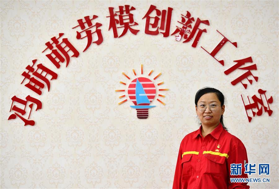 6月29日,馮萌萌在大港油田采油二廠二區(qū)“馮萌萌勞模創(chuàng)新工作室”留影。新華社記者李然攝