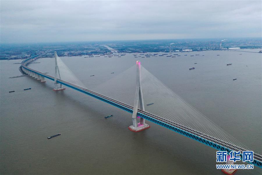 滬蘇通長(zhǎng)江公鐵大橋(6月29日攝,無(wú)人機(jī)照片)。即將于7月1日通車(chē)的滬蘇通長(zhǎng)江公鐵大橋北起江蘇南通,南至江蘇張家港,公鐵合建跨江正橋全長(zhǎng)5827米,為集合高速公路、客貨混線鐵路、高速鐵路的“三合一”過(guò)江通道,建成通車(chē)后將有效促進(jìn)長(zhǎng)三角城市群跨江融合、協(xié)同發(fā)展。新華社記者季春鵬攝