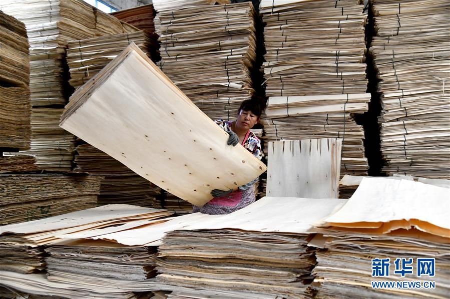 6月30日,在費縣坤林木業(yè)有限公司,工人在整理板材原料。地處沂蒙革命老區(qū)的山東省臨沂市費縣探沂鎮(zhèn)近年來圍繞鄉(xiāng)村振興戰(zhàn)略,謀劃“一鎮(zhèn)一業(yè)”,以木業(yè)產(chǎn)業(yè)為抓手,積極引導(dǎo)全鎮(zhèn)3136家木業(yè)企業(yè)進行園區(qū)化、集約化、智能化發(fā)展,成為遠近聞名的“木業(yè)特色小鎮(zhèn)”。2019年,該鎮(zhèn)規(guī)模以上工業(yè)總產(chǎn)值187億元,農(nóng)民人均純收入2萬元左右,木業(yè)產(chǎn)業(yè)有力助推當(dāng)?shù)氐泥l(xiāng)村振興。新華社記者郭緒雷攝