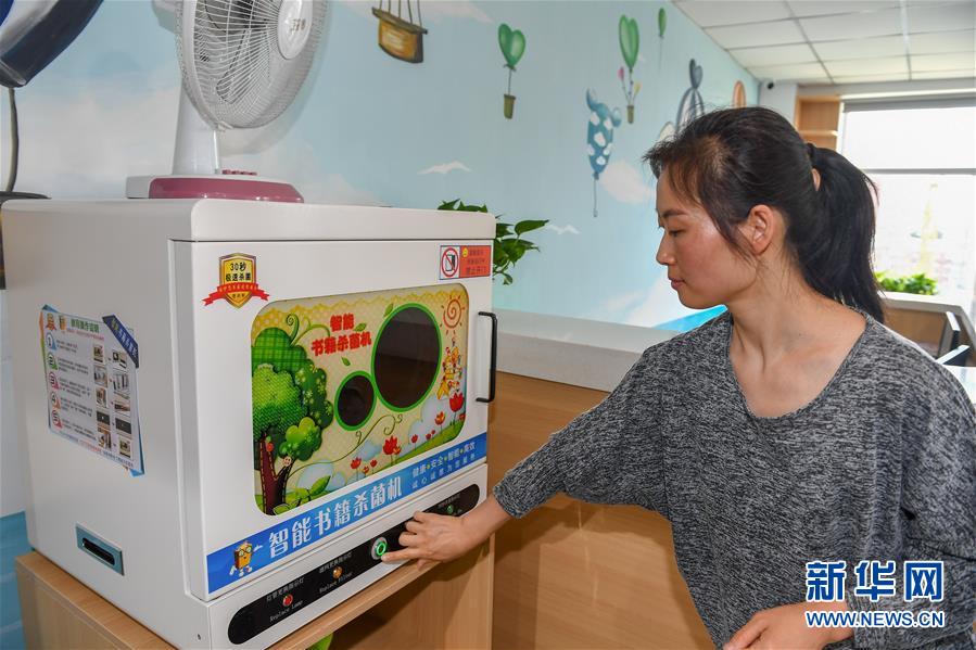7月2日,在長春市少年兒童圖書館平陽社區(qū)繪本主題分館,管理員金敏為圖書進行消殺。長春市少年兒童圖書館平陽社區(qū)繪本主題分館位于南關(guān)區(qū)曙光街道平陽社區(qū),目前藏書約5000冊。該館于6月30日揭牌開館,由長春市少年兒童圖書館和南關(guān)區(qū)曙光街道辦事處共同打造,是長春首個繪本主題圖書分館。可為周邊居民和兒童提供圖書借閱、數(shù)字閱讀體驗、親子活動、少兒公益活動等服務(wù)。新華社記者張楠攝
