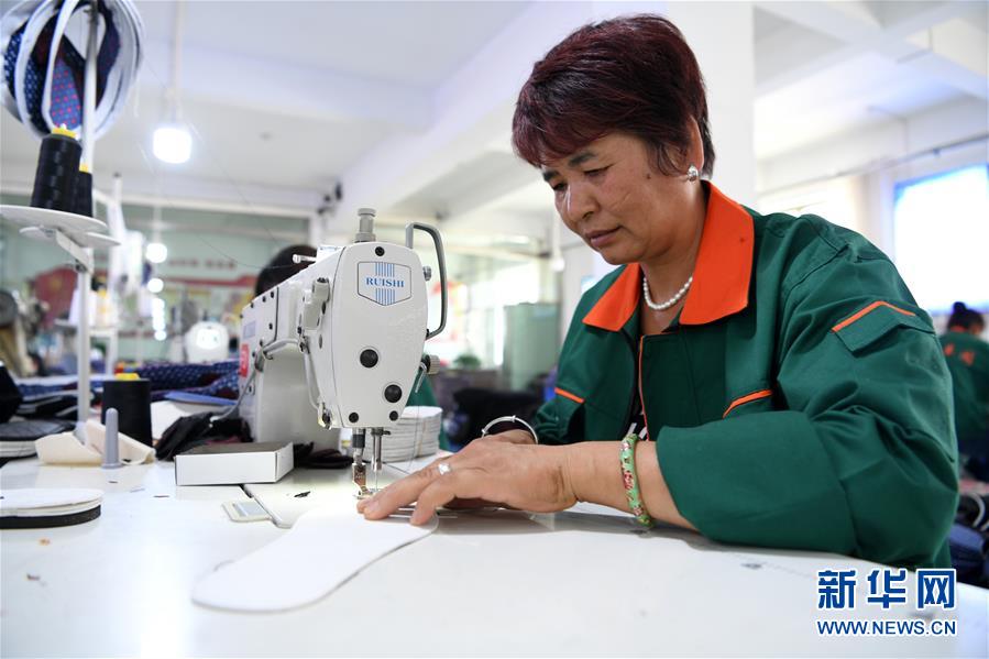 7月2日,臨夏縣百利布鞋加工農(nóng)民專業(yè)合作社員工在加工布鞋。甘肅省臨夏回族自治州臨夏縣將布鞋加工定為重點(diǎn)扶持發(fā)展的產(chǎn)業(yè),采用“政府+公司+貧困戶”的產(chǎn)業(yè)扶貧模式,由政府主導(dǎo)、企業(yè)出資,在貧困村建設(shè)“扶貧車(chē)間”,吸納貧困群眾從事布鞋加工產(chǎn)業(yè)增加收入。截至2019年底,當(dāng)?shù)夭夹庸て髽I(yè)和加工戶遍及近百個(gè)行政村,從業(yè)人員達(dá)到4000多人,累計(jì)生產(chǎn)布鞋600多萬(wàn)雙,實(shí)現(xiàn)銷售收入2.32億元。新華社記者范培珅攝