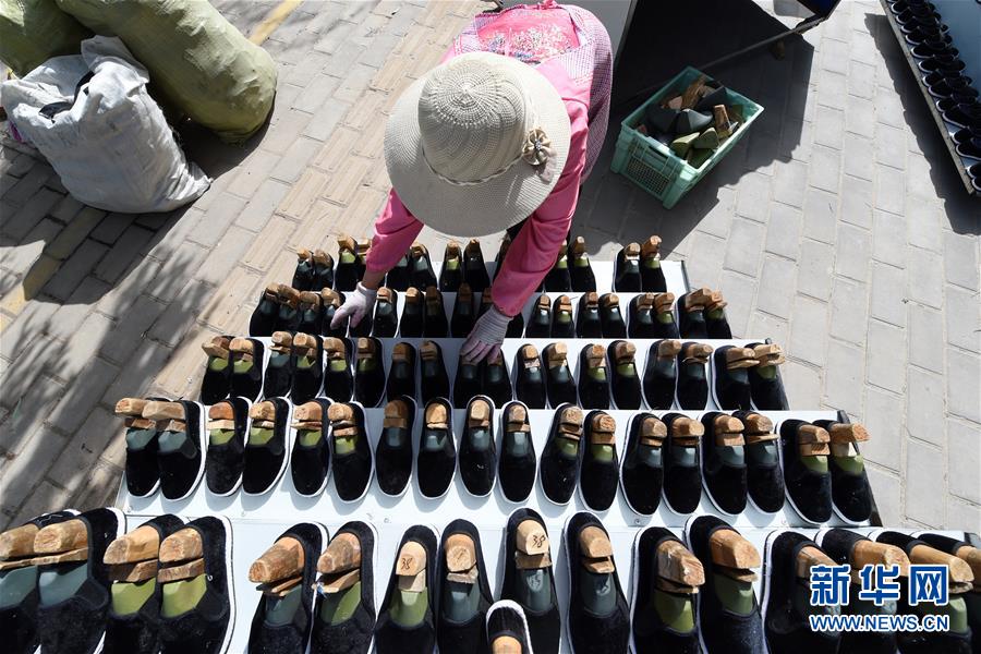 7月2日,臨夏縣百利布鞋加工農(nóng)民專業(yè)合作社員工在擺放布鞋。甘肅省臨夏回族自治州臨夏縣將布鞋加工定為重點(diǎn)扶持發(fā)展的產(chǎn)業(yè),采用“政府+公司+貧困戶”的產(chǎn)業(yè)扶貧模式,由政府主導(dǎo)、企業(yè)出資,在貧困村建設(shè)“扶貧車(chē)間”,吸納貧困群眾從事布鞋加工產(chǎn)業(yè)增加收入。截至2019年底,當(dāng)?shù)夭夹庸て髽I(yè)和加工戶遍及近百個(gè)行政村,從業(yè)人員達(dá)到4000多人,累計(jì)生產(chǎn)布鞋600多萬(wàn)雙,實(shí)現(xiàn)銷售收入2.32億元。新華社記者范培珅攝
