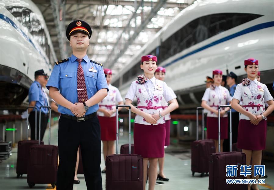 7月3日,擔(dān)任首發(fā)列車值乘工作的班組人員在貴陽(yáng)亮相。 新華社記者 劉續(xù) 攝