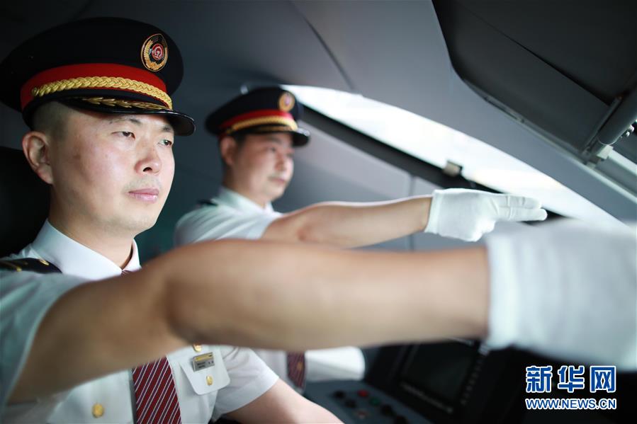 7月3日,擔(dān)任首發(fā)列車值乘工作的貴陽機(jī)務(wù)段司機(jī)在貴陽亮相。 新華社記者 劉續(xù) 攝