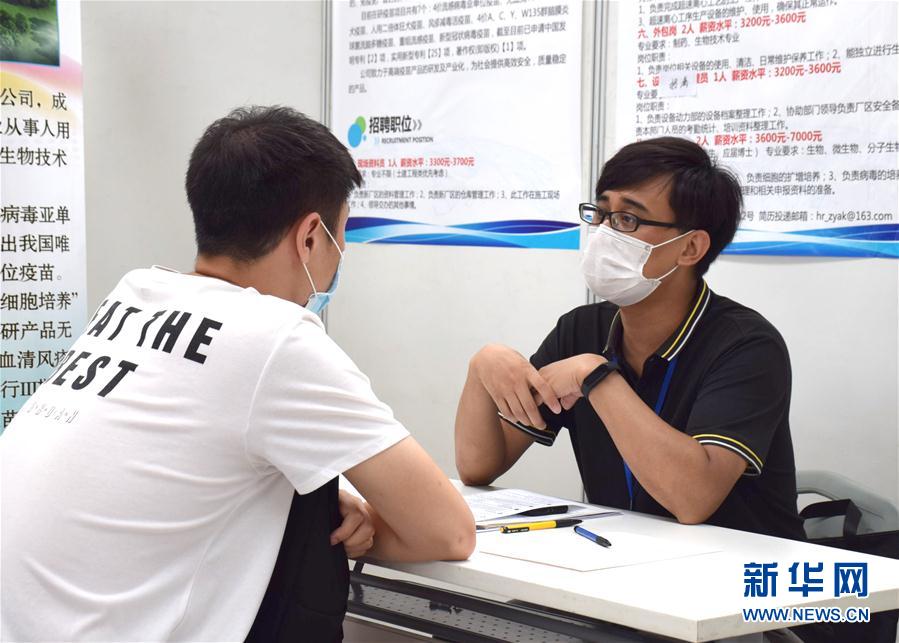 7月4日,求職者與企業(yè)人事專員交流。新華社記者 白佳麗 攝