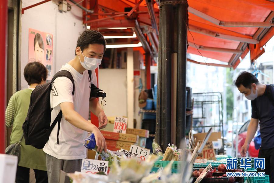 7月5日,在日本東京,人們戴口罩選購蔬果。據(jù)日本廣播協(xié)會電視臺5日統(tǒng)計,截至當?shù)貢r間22時(北京時間21時),日本當日新增新冠確診病例208例,連續(xù)3天單日新增超過200例,目前累計確診19822例,累計死亡977例。新華社記者杜瀟逸攝