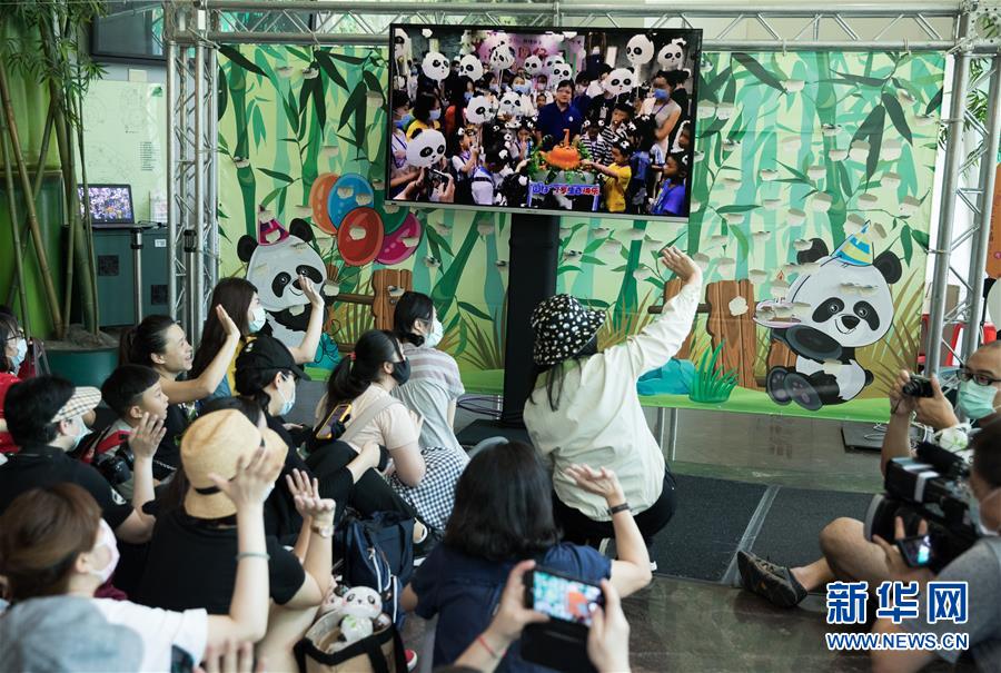 7月6日,在臺(tái)北市立動(dòng)物園,大熊貓“圓仔”的臺(tái)北粉絲和四川粉絲互致問(wèn)候,共同慶?!皥A仔”生日。新華社記者金立旺攝
