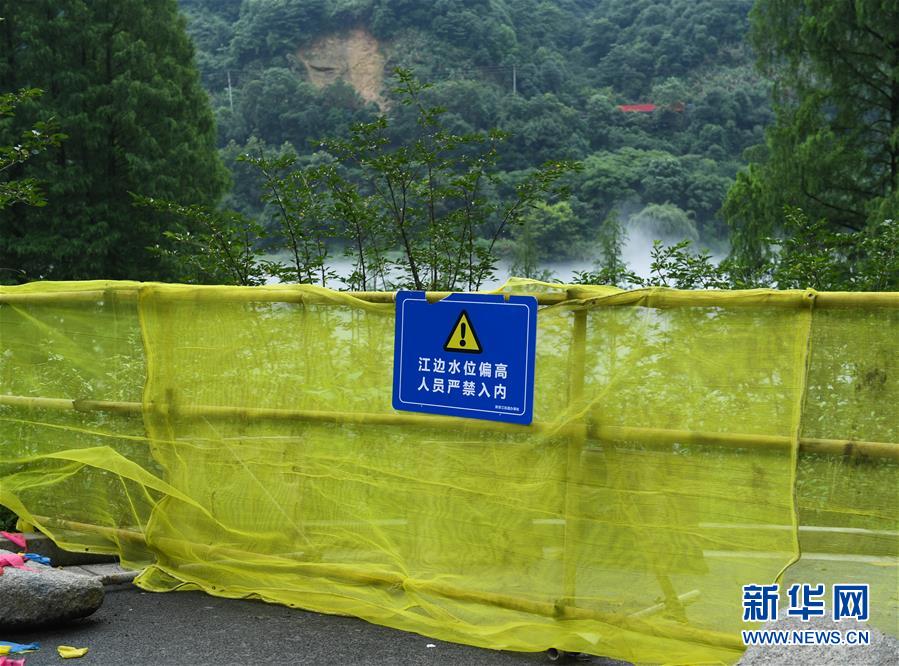 新安江畔的步道已被封閉(7月6日攝)。受連續(xù)強降雨影響,位于浙江建德的新安江水庫水位持續(xù)上漲。據(jù)浙江省水利廳發(fā)布的數(shù)據(jù),截至7月6日14時,水庫水位上漲至106.54米,超汛限水位0.04米,且仍在上漲中。為確保水庫防洪安全、合理利用水資源,新安江水庫預(yù)計于7月7日開啟泄洪閘泄洪。新華社記者翁忻旸攝
