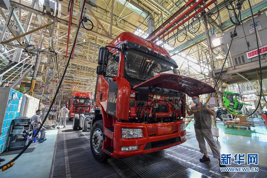 在位于長春市的一汽解放總裝車間,工人在裝配車輛(6月19日攝)。中國第一汽車集團(tuán)披露,截至6月30日,集團(tuán)上半年共計(jì)生產(chǎn)整車162.23萬輛,同比增長1.5%;銷售整車163.09萬輛,同比增長2.3%。新華社記者張楠攝