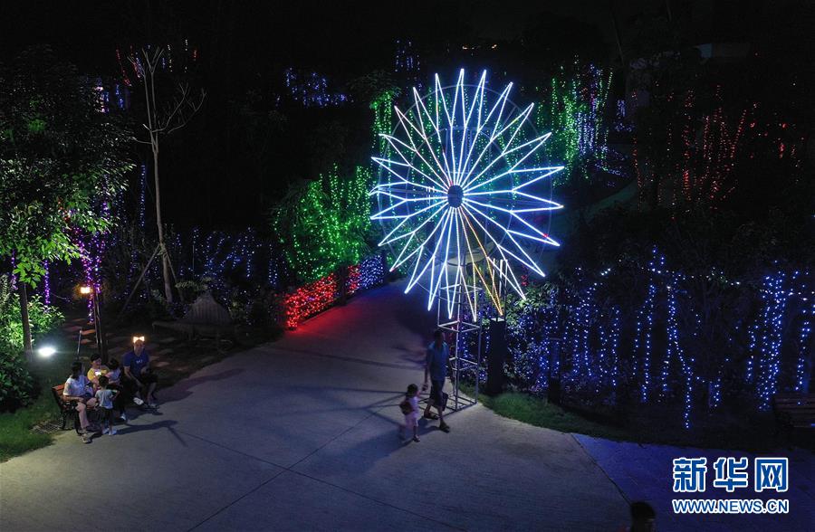 這是融安縣城一處夜景(7月7日攝,無人機照片)。夏夜的廣西融安縣城燈火璀璨,景色迷人。新華社記者張愛林攝