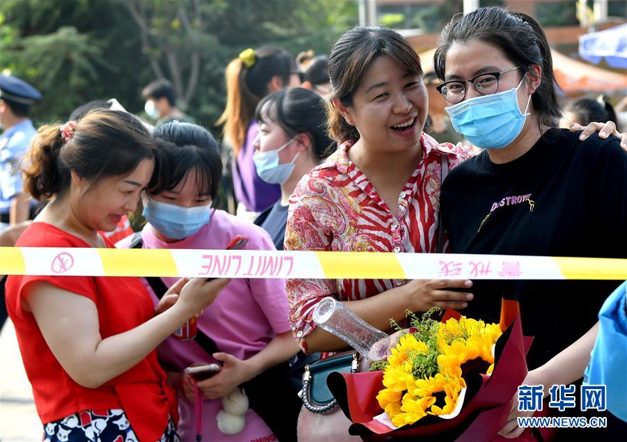 7月8日,陜西省西安中學(xué)考點(diǎn),家長(zhǎng)為考生送上鮮花。當(dāng)日,全國(guó)部分地區(qū)2020年高考結(jié)束。新華社記者劉瀟攝