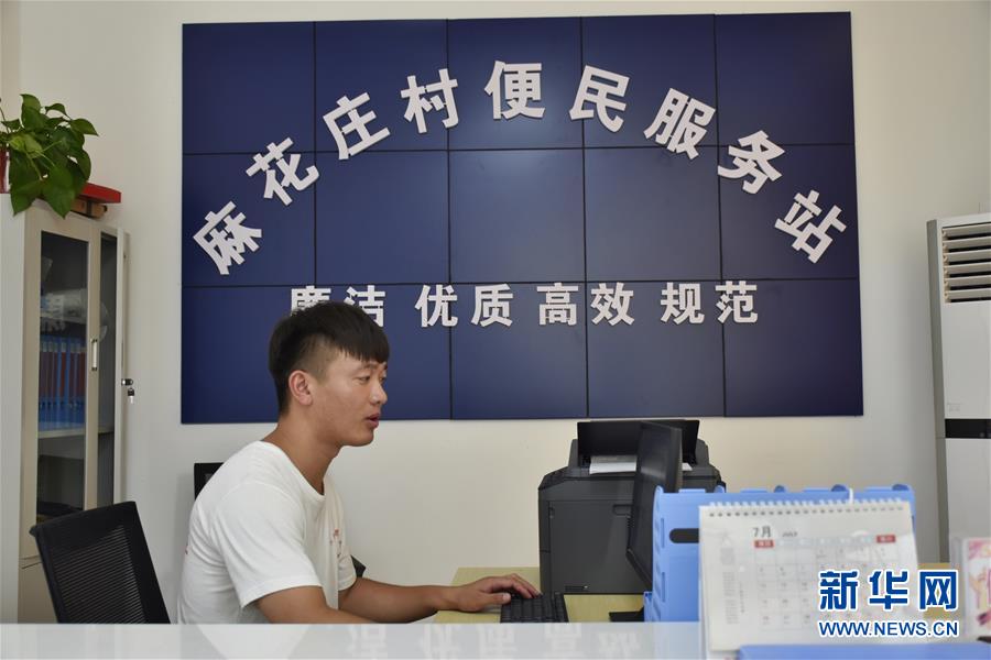 7月8日,張亞博在麻花莊村便民服務站整理資料。新華社記者韓朝陽攝