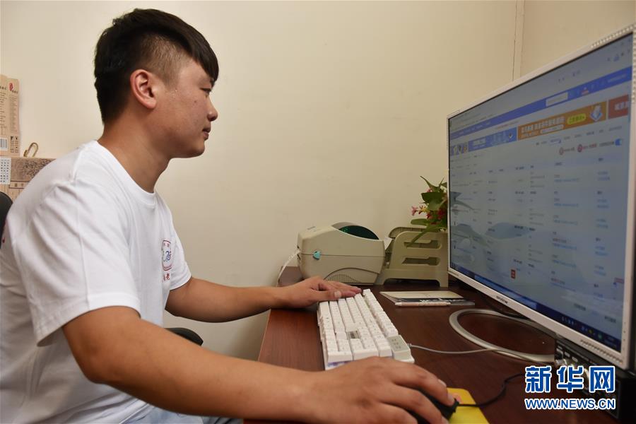 7月8日,張亞釗在處理網(wǎng)絡訂單。新華社記者韓朝陽攝