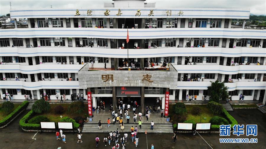 7月9日,考生進(jìn)入歙縣第二中學(xué)考點(diǎn)(無人機(jī)照片)。受強(qiáng)降雨影響,2020年高考安徽歙縣考區(qū)7月7日未能如期開考,經(jīng)研究并報(bào)教育部批準(zhǔn),歙縣考區(qū)于9日啟用2020年普通高等學(xué)校招生全國(guó)統(tǒng)一考試語(yǔ)文、數(shù)學(xué)(文、理)科目副題進(jìn)行考試。新華社記者黃博涵攝