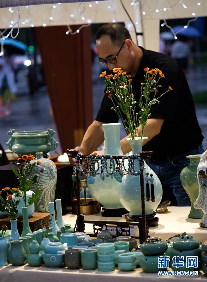 7月10日,工作人員在嘉年華現場特色商品攤位忙碌。新華社記者徐昱攝。