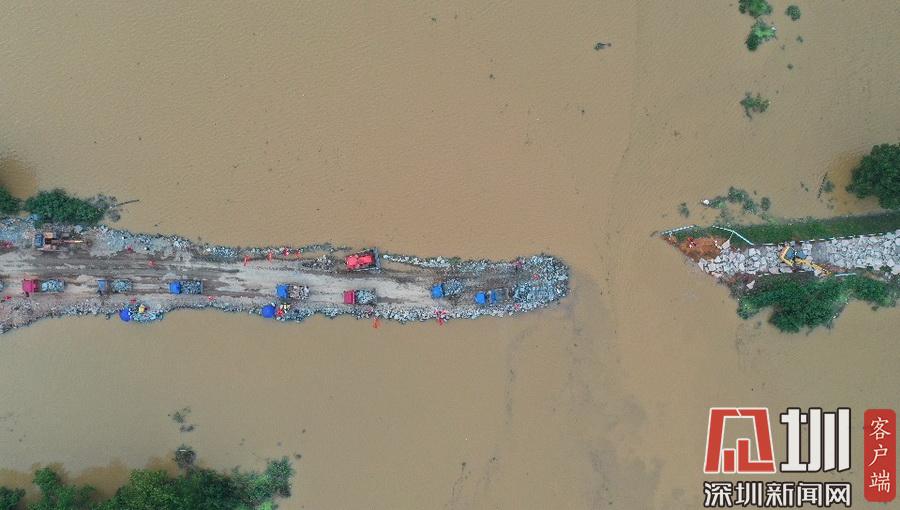 2020年7月13日,江西鄱陽(yáng)縣問桂道圩,決口封堵進(jìn)入最后攻堅(jiān)階段。受持續(xù)強(qiáng)降雨影響,7月8日20時(shí)35分,位于江西省上饒市鄱陽(yáng)縣鄱陽(yáng)鎮(zhèn)的問桂道圩堤出現(xiàn)漫決險(xiǎn)情,導(dǎo)致良田、村莊受淹,受淹村民已安全轉(zhuǎn)移。連日來,中國(guó)安能第二工程局在此處對(duì)問桂道決口圩堤進(jìn)占填筑,目前進(jìn)入最后攻堅(jiān)階段。