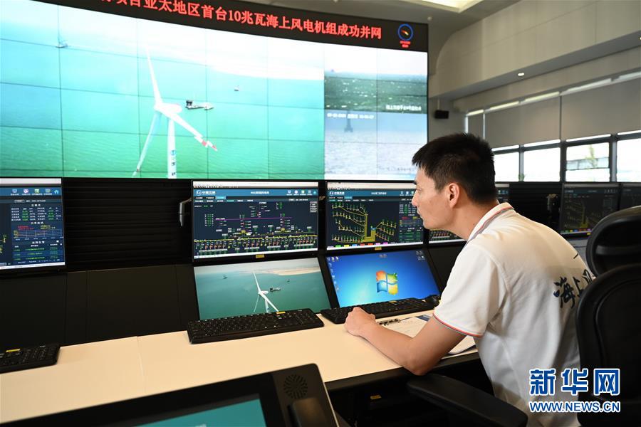 7月12日,三峽福建海上風電集控中心工作人員在調試首臺10兆瓦海上風電機組。記者7月13日從三峽集團了解到,國內首臺10兆瓦海上風電機組日前在三峽集團福建福清興化灣二期海上風電場成功并網發(fā)電,這是目前我國自主研發(fā)的單機容量亞太地區(qū)最大、全球第二大的海上風電機組,刷新了我國海上風電單機容量新紀錄。新華社記者 林善傳 攝