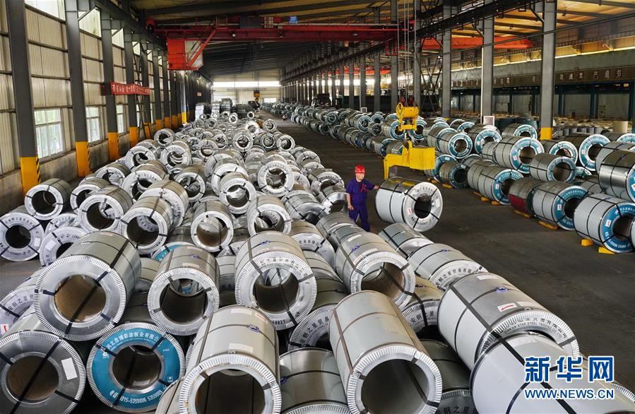7月13日,河北省遷安市一家鋼鐵外貿(mào)企業(yè)的工人在生產(chǎn)車間內(nèi)吊裝彩涂板。近期,河北省遷安市的紡織、鋼鐵、建材等二十余家外貿(mào)企業(yè)加緊生產(chǎn)趕制訂單,滿足市場需求。同時,當(dāng)?shù)卣ㄟ^落實(shí)各項(xiàng)惠企政策,加大對外貿(mào)企業(yè)的幫扶支持力度,助力經(jīng)濟(jì)平穩(wěn)發(fā)展。新華社記者 牟宇 攝