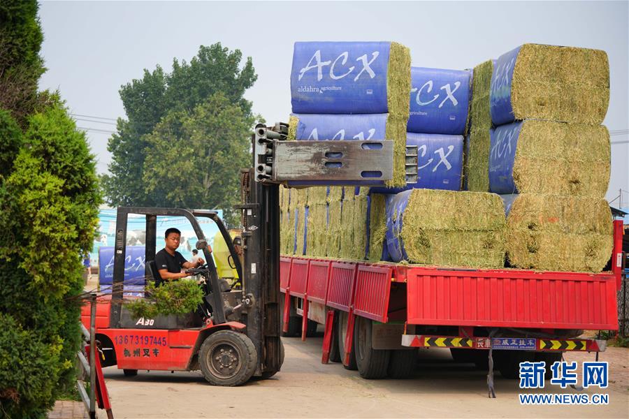 7月11日,河北省清河縣永興奶牛養(yǎng)殖場的工人在運送奶牛飼料。近年來,河北省清河縣將扶貧工作與現(xiàn)代農(nóng)業(yè)結(jié)合,以龍頭企業(yè)為引領(lǐng),成立合作社,鼓勵貧困戶利用扶貧資金入股奶牛養(yǎng)殖場,幫助他們常年獲得穩(wěn)定收益。同時,貧困戶農(nóng)閑時還可到產(chǎn)業(yè)園區(qū)打工,既拿股金,又掙薪金,實現(xiàn)“造血式”脫貧。新華社記者 牟宇 攝