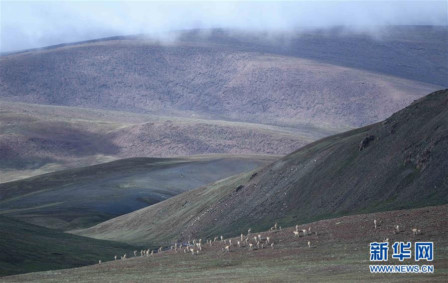 7月7日在可可西里卓乃湖區(qū)域拍攝的一群藏羚羊。目前正值藏羚羊產仔季。來自青海三江源、新疆阿爾金山、西藏羌塘等地的藏羚羊來到位于青海省可可西里腹地、被譽為“藏羚羊大產房”的卓乃湖區(qū)域產仔。新華社記者 張龍 攝