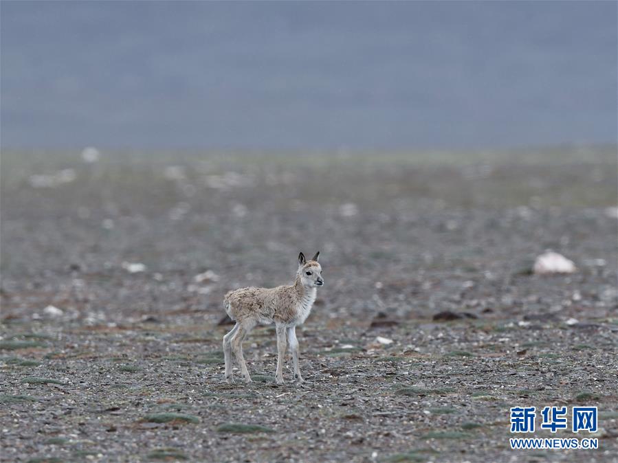 7月7日在可可西里卓乃湖區(qū)域拍攝的一只藏羚羊幼仔。目前正值藏羚羊產仔季。來自青海三江源、新疆阿爾金山、西藏羌塘等地的藏羚羊來到位于青海省可可西里腹地、被譽為“藏羚羊大產房”的卓乃湖區(qū)域產仔。新華社記者 張龍 攝