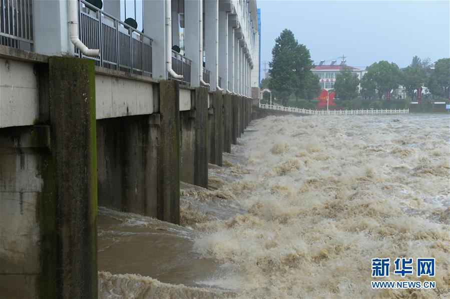 7月20日,洪水通過(guò)王家壩閘涌入蒙洼蓄洪區(qū)。當(dāng)日8時(shí)32分,淮河干流王家壩閘開閘泄洪。受近期強(qiáng)降雨影響,淮河干流王家壩站水位19日快速上漲,7月20日6時(shí)36分水位漲至29.66米,超過(guò)保證水位0.36米?;春油跫覊伍l開閘泄洪,蒙洼蓄洪區(qū)啟用。新華社記者黃博涵攝