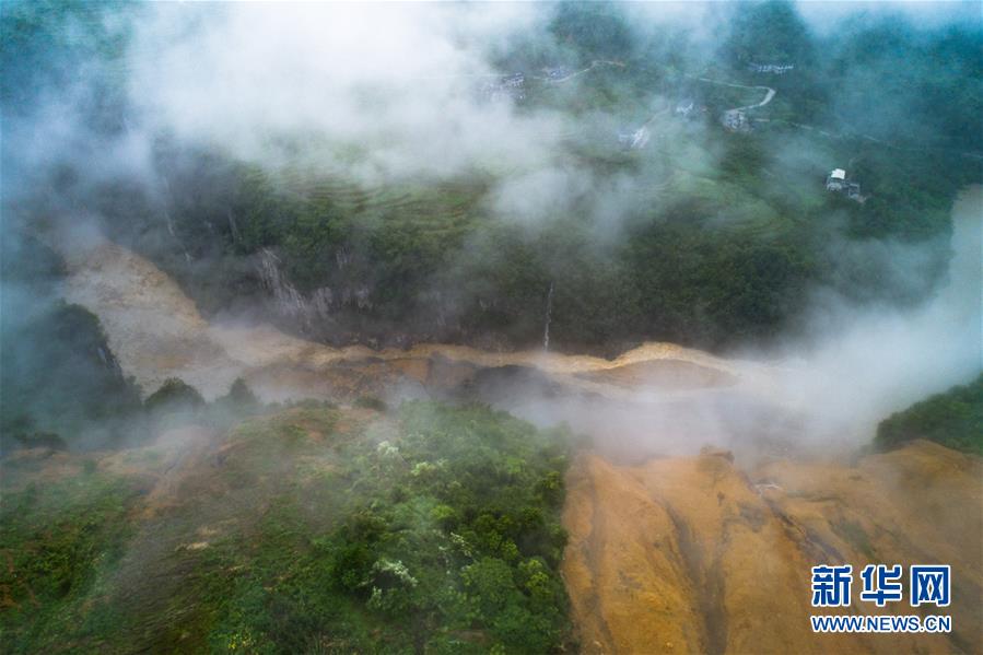 7月21日拍攝的因恩施州屯堡鄉(xiāng)馬者村山體滑坡形成的堰塞湖(無人機(jī)照片)。當(dāng)日,湖北恩施土家族苗族自治州屯堡鄉(xiāng)馬者村沙子壩滑坡體出現(xiàn)大面積滑移,形成堰塞湖,上游水位已上漲5米左右。目前,相關(guān)部門和鄉(xiāng)鎮(zhèn)正在組織形成堰塞湖后可能受影響區(qū)域的群眾轉(zhuǎn)移和交通管控工作。大龍?zhí)端畮煺诩涌祢v庫,最大限度保證廣大群眾生命財(cái)產(chǎn)安全。新華社記者肖藝九攝