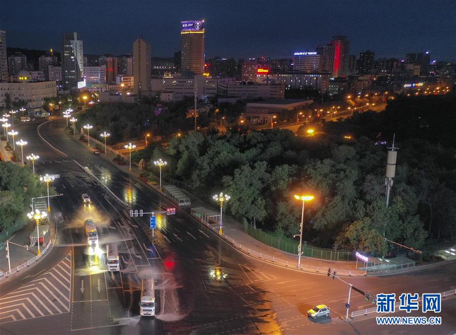 7月20日,烏魯木齊市天山區(qū)城管局清運(yùn)隊(duì)的工作車(chē)輛在市區(qū)西大橋進(jìn)行消殺作業(yè)(無(wú)人機(jī)照片)。烏魯木齊市天山區(qū)城管局自7月17日起,對(duì)天山區(qū)的主次干道76條及235條巷道進(jìn)行集中消殺。目前,烏魯木齊市對(duì)重點(diǎn)區(qū)域進(jìn)行全面消毒消殺。新華社記者趙戈攝