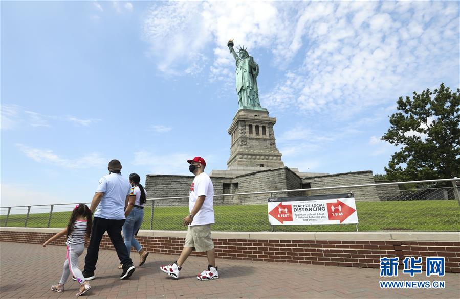 7月20日,參觀者在美國(guó)紐約自由島游覽。美國(guó)紐約市20日繼續(xù)推進(jìn)經(jīng)濟(jì)重啟計(jì)劃,宣布開(kāi)始進(jìn)入解封新階段,進(jìn)一步允許部分低風(fēng)險(xiǎn)文娛活動(dòng)重啟。自由女神像所在的自由島對(duì)公眾開(kāi)放,但雕像內(nèi)部和博物館仍關(guān)閉。新華社記者王迎攝