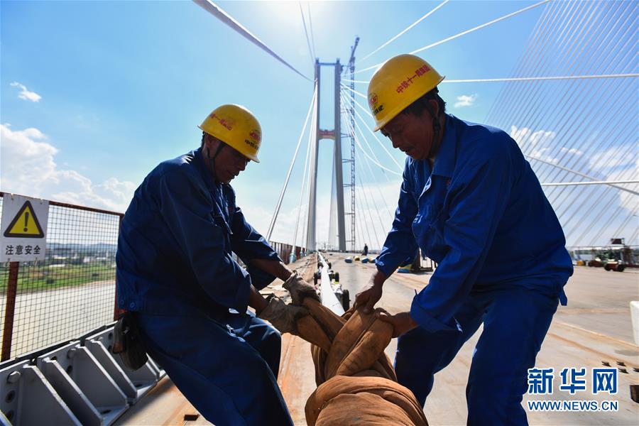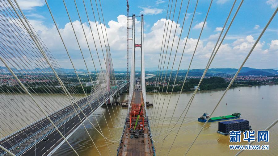 當(dāng)日,中鐵十一局承建的粵港澳大灣區(qū)基礎(chǔ)設(shè)施“硬聯(lián)通”重點(diǎn)工程——廣州南沙港鐵路跨西江特大斜拉橋完成最后一組斜拉索吊裝,大橋預(yù)計(jì)在7月底合龍。該橋位于廣東佛山市和江門市交界處,全長(zhǎng)1117.5米。