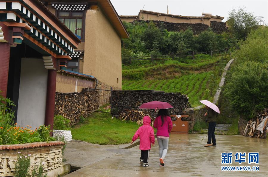 雨中踏訪,靜謐、安詳、干凈是神座村帶給記者的第一印象。空氣也仿佛是剛剛清洗過,沁人心脾。一幢幢藏家土黃色泥墻民居,面朝茂密的森林,坐落在鮮花盛開的草場上。輕輕敲開藏族群眾拉青家的門,48歲的拉青便領(lǐng)著記者參觀他家的民宿。他告訴記者,2017年,他賣掉家里的367頭牦牛,收入200多萬元,用其中一半的錢建起氣派的民居,開起客棧。第二年,客棧收入就超過15萬元,加上售賣土特產(chǎn)收入7萬多元,他家四口人當(dāng)年收入超過22萬元。在他帶領(lǐng)下,先后有10多戶牧民賣牛下山辦民宿,破解了神座村過度放牧給生態(tài)環(huán)境造成壓力的難題。