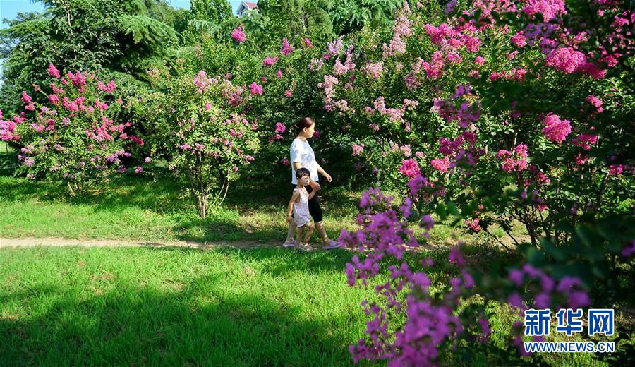 7月26日,村民在欒卸村一處花園游玩。盛夏,位于太行山區(qū)的河北省沙河市欒卸村滿(mǎn)目蔥蘢,山水、田園、民居構(gòu)成一幅美麗鄉(xiāng)村圖景。新華社記者 牟宇 攝
