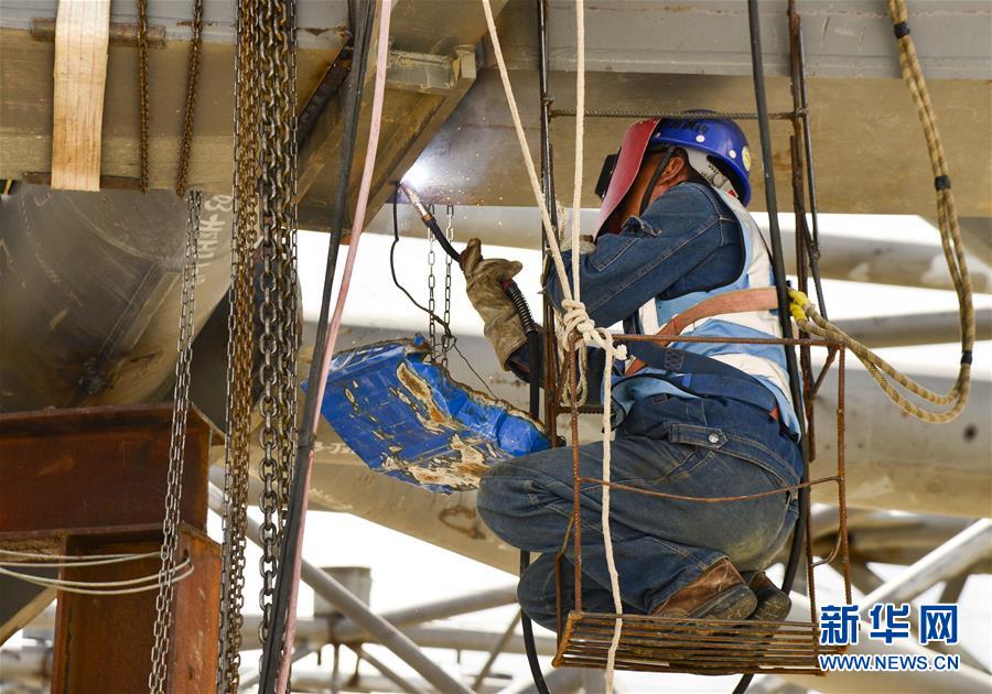 7月27日,工人在拉薩貢嘎國際機(jī)場T3航站樓的工地上作業(yè)。新華社記者 田金文 攝