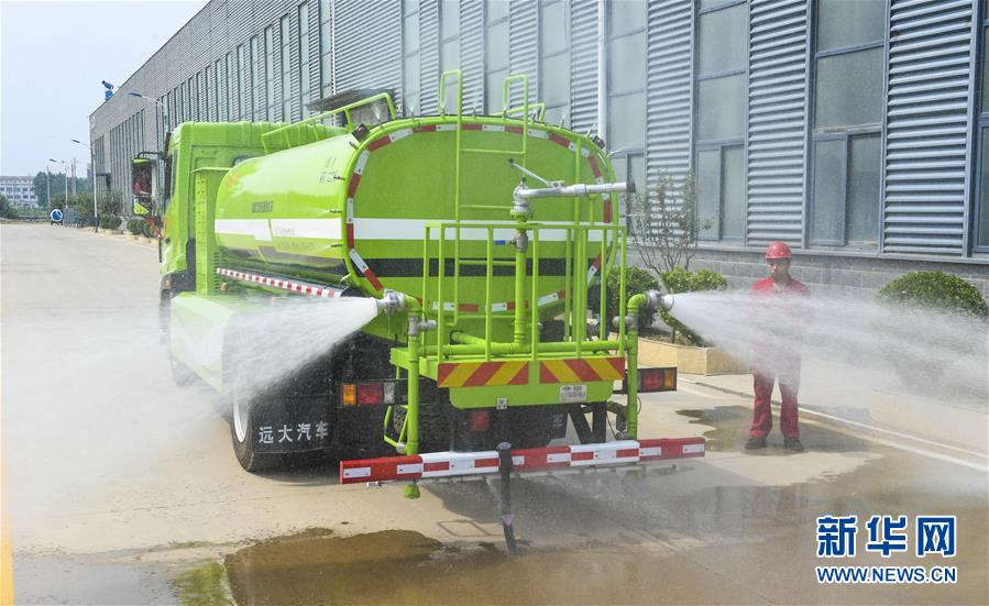 7月27日,河北景縣開發(fā)區(qū)一家新能源汽車制造公司工人在對增程式新能源灑水車進(jìn)行性能校驗(yàn)。新華社記者 李曉果 攝