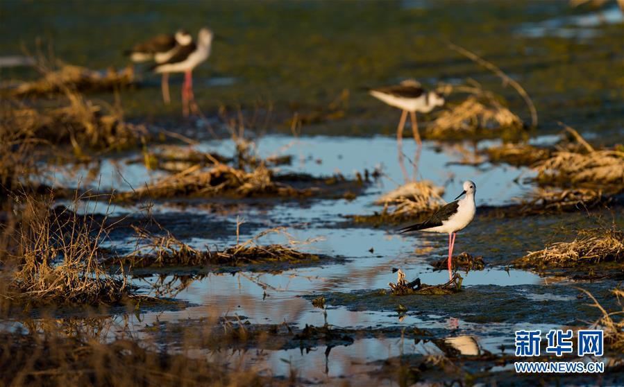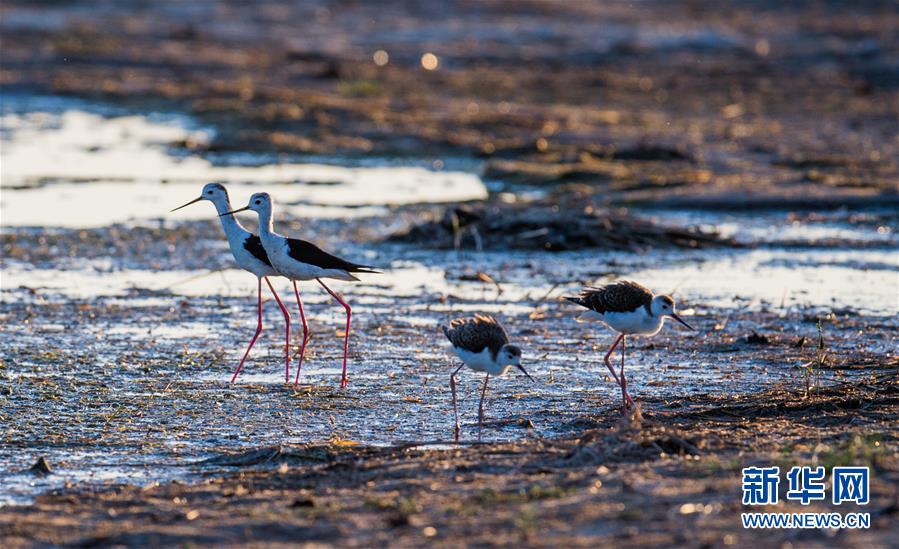 7月28日,長腳鷸在桃力廟—阿拉善灣海子覓食。鄂爾多斯?jié)竦匚挥趲觳箭R沙漠、毛烏素沙地接壤地帶,2002年被列入國際重要濕地名錄。從2006年開始,由于濕地湖面萎縮、湖心島消失,在此筑巢繁殖的世界瀕危物種遺鷗幾近消失。近年來,當(dāng)?shù)夭扇《喾N治理措施,濕地生態(tài)環(huán)境逐步好轉(zhuǎn)。2019年起,濕地內(nèi)的桃力廟—阿拉善灣海子迎來遺鷗大規(guī)?!盎貧w”。如今,40多種鳥類在此棲息,鄂爾多斯?jié)竦刂匦鲁蔀轼B類的樂園。新華社記者連振攝