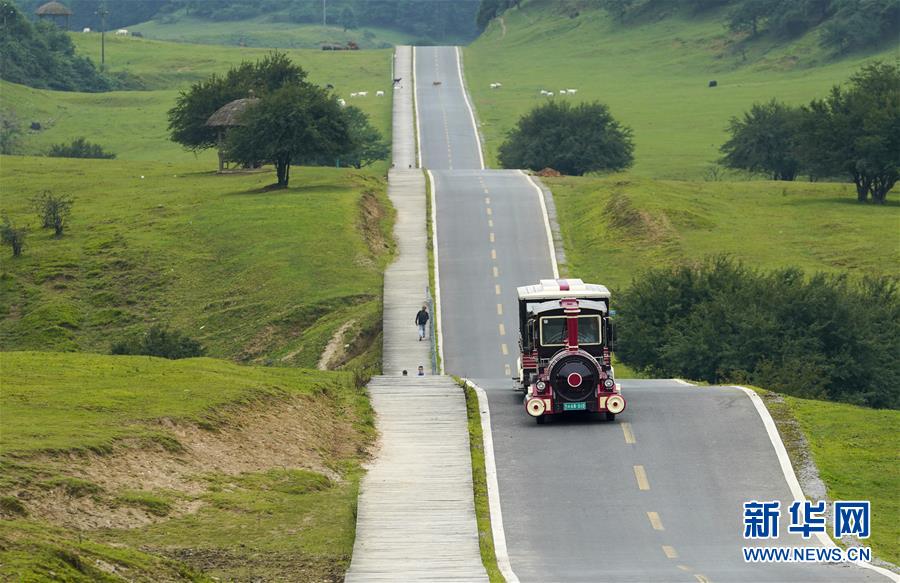 7月30日,小火車(chē)載著游客行駛在仙女山國(guó)家森林公園。