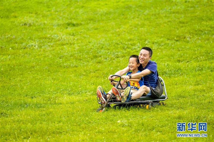 7月30日,在仙女山國家森林公園,人們在玩“滑草”。新華社記者劉潺攝