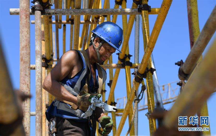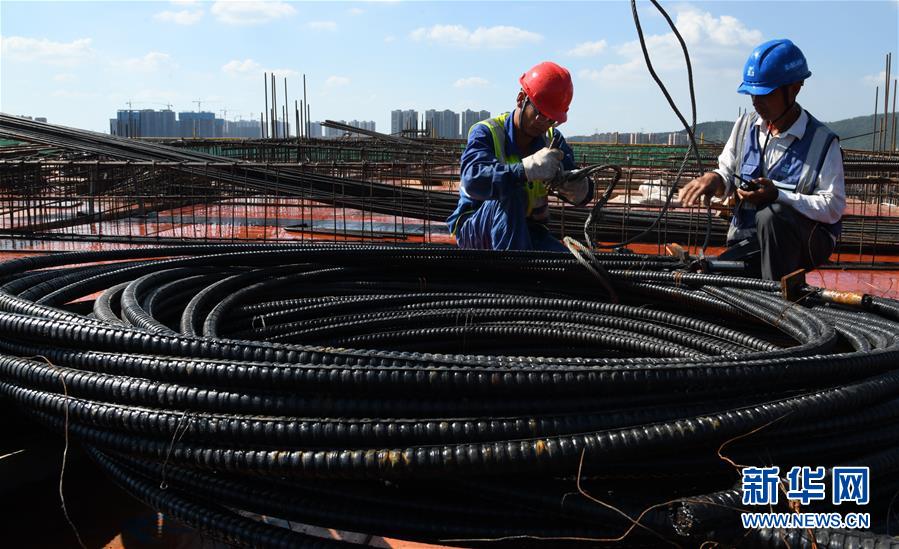 8月3日,工人在長江文創(chuàng)產(chǎn)業(yè)園項目工地施工。進入8月,武漢迎來持續(xù)高溫天氣。在湖北廣電傳媒基地工程的工地上,中建三局總承包公司1500多名工人持續(xù)奮戰(zhàn),力保工程進度。該工程是我國中部地區(qū)首個國家級廣播影視媒體基地,由湖北廣電傳媒大廈項目、長江文創(chuàng)產(chǎn)業(yè)園項目、廣電生活配套項目三大板塊組成,總建設規(guī)模130萬平方米。自今年3月25日獲批正式復工以來,承建方克服困難,把因疫情影響耽誤的工期趕了回來,預計將按原計劃完成建設任務。新華社記者程敏攝