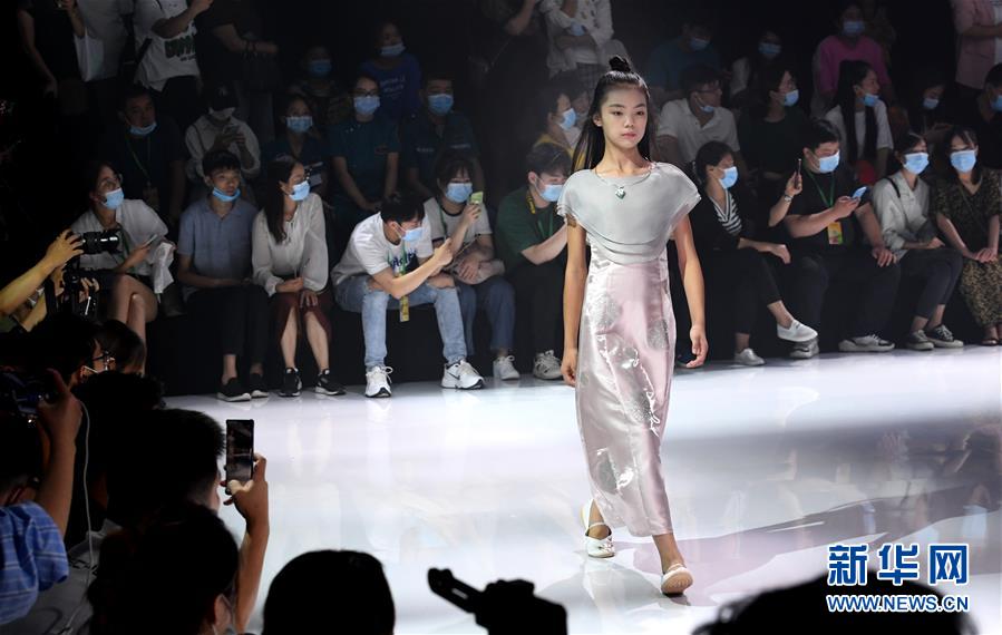 8月7日,小模特在T臺上展示童裝。當(dāng)日,2020中國(河南)國際大學(xué)生時裝周舉行童裝設(shè)計(jì)專場展示。8月5日至7日,2020中國(河南)國際大學(xué)生時裝周在河南省新密市豫發(fā)密蘭小鎮(zhèn)舉行。新華社記者朱祥攝